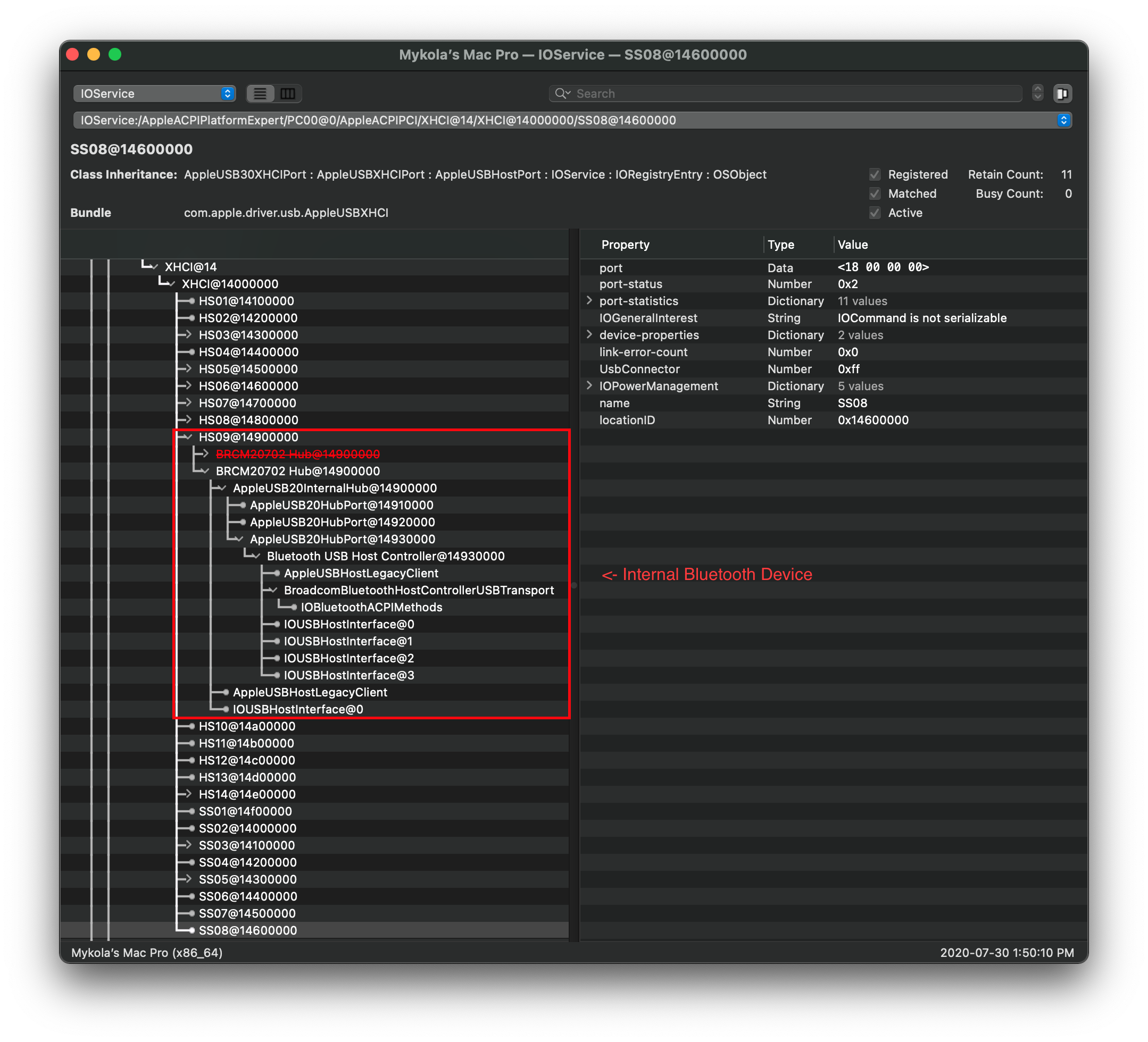 Tuy không rõ ràng với nhiều người, nhưng Bluetooth thực chất chạy qua giao diện USB nội bộ. Nghĩa là khi lập sơ đồ, bạn cần chú ý kỹ các thiết bị đã hiện sẵn trong IOReg: