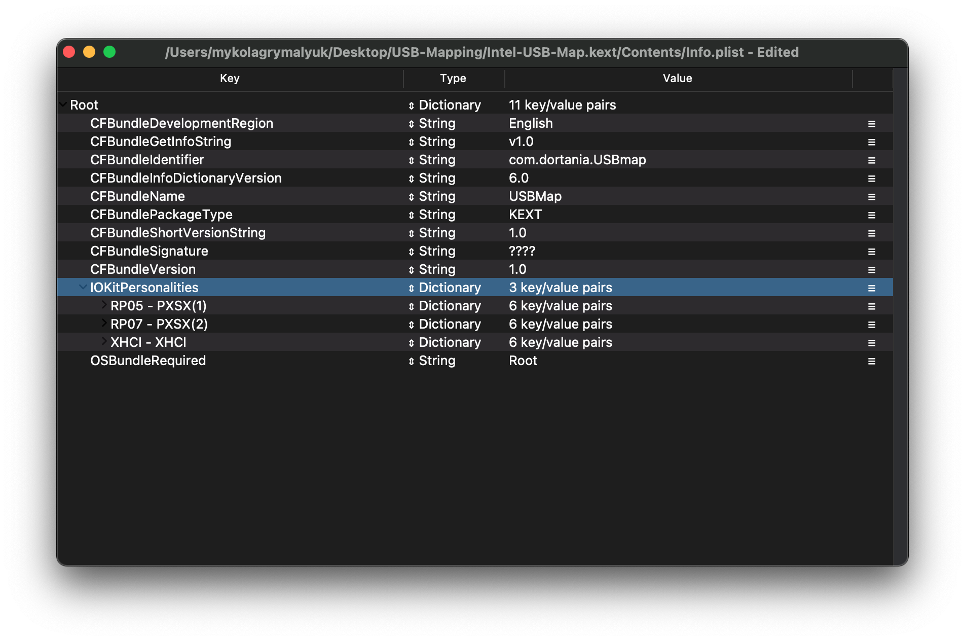 Ở đây chúng ta thấy một số mục, dưới IOKitPersonalities: