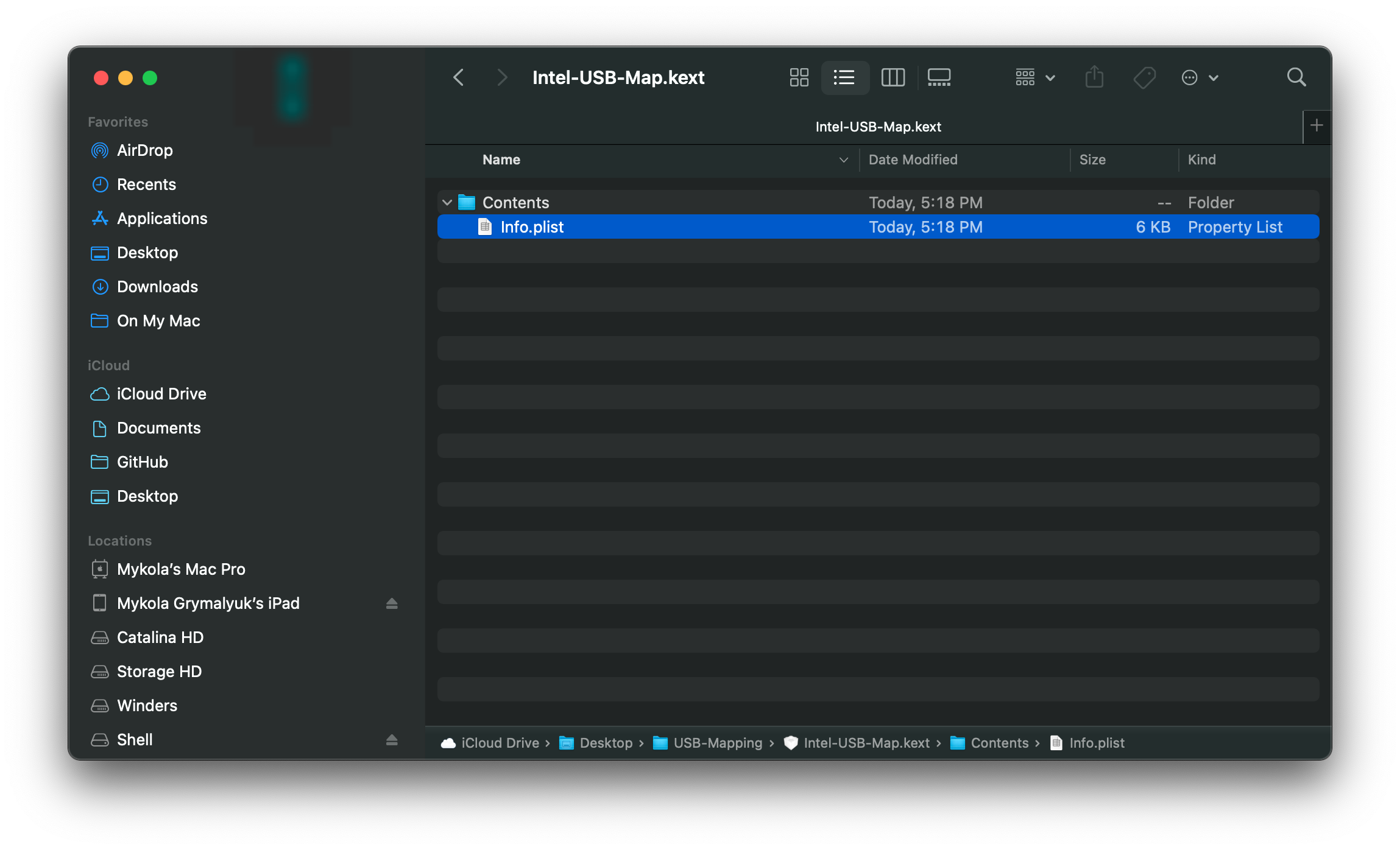 Chuột phải vào file .kext, chọn Show Package Contents (Hiển thị nội dung gói), rồi đi sâu vào tìm info.plist: