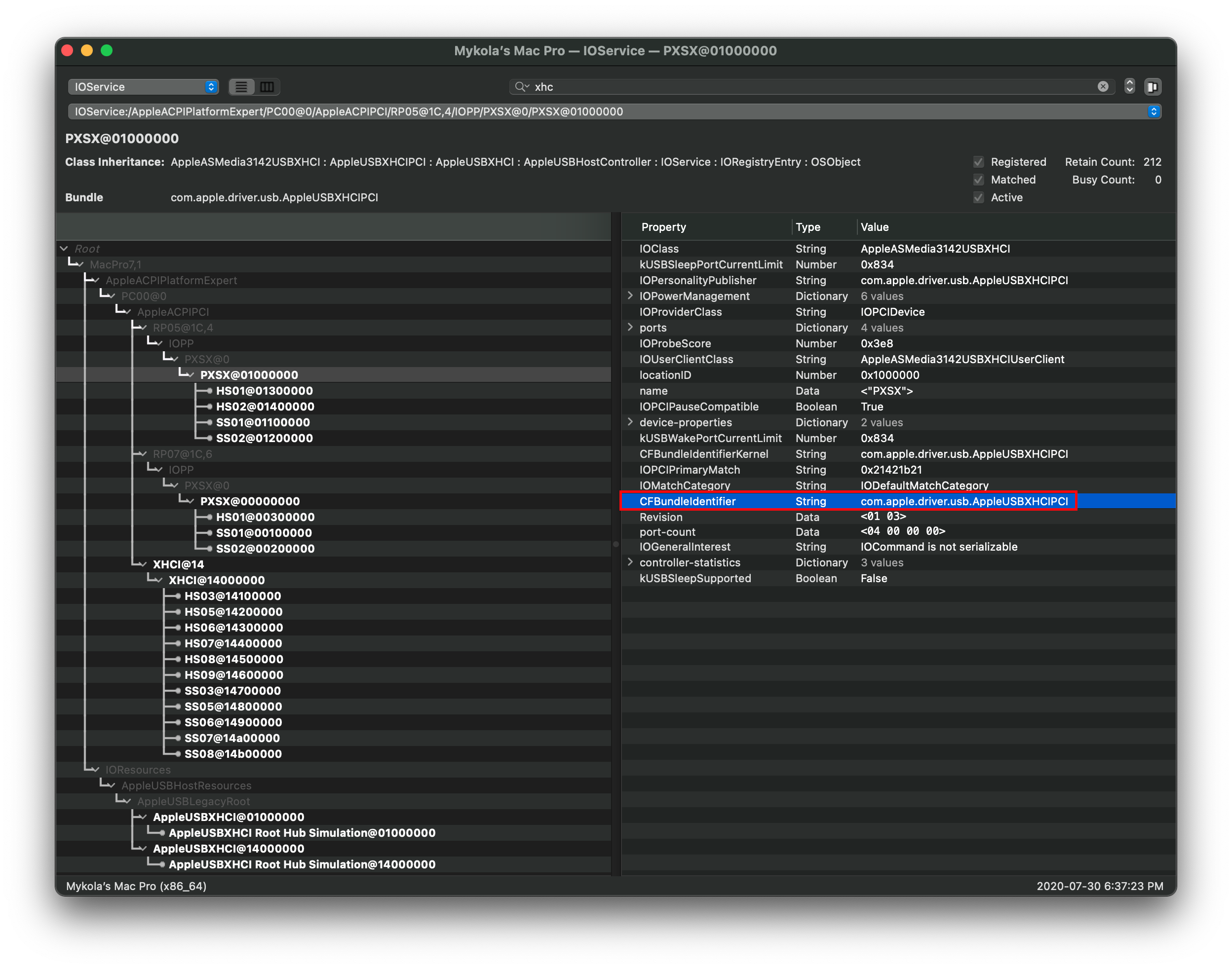 Tìm IOProviderClass cũng dễ, chọn Root-hub lần nữa và tìm giá trị CFBundleIdentifier: