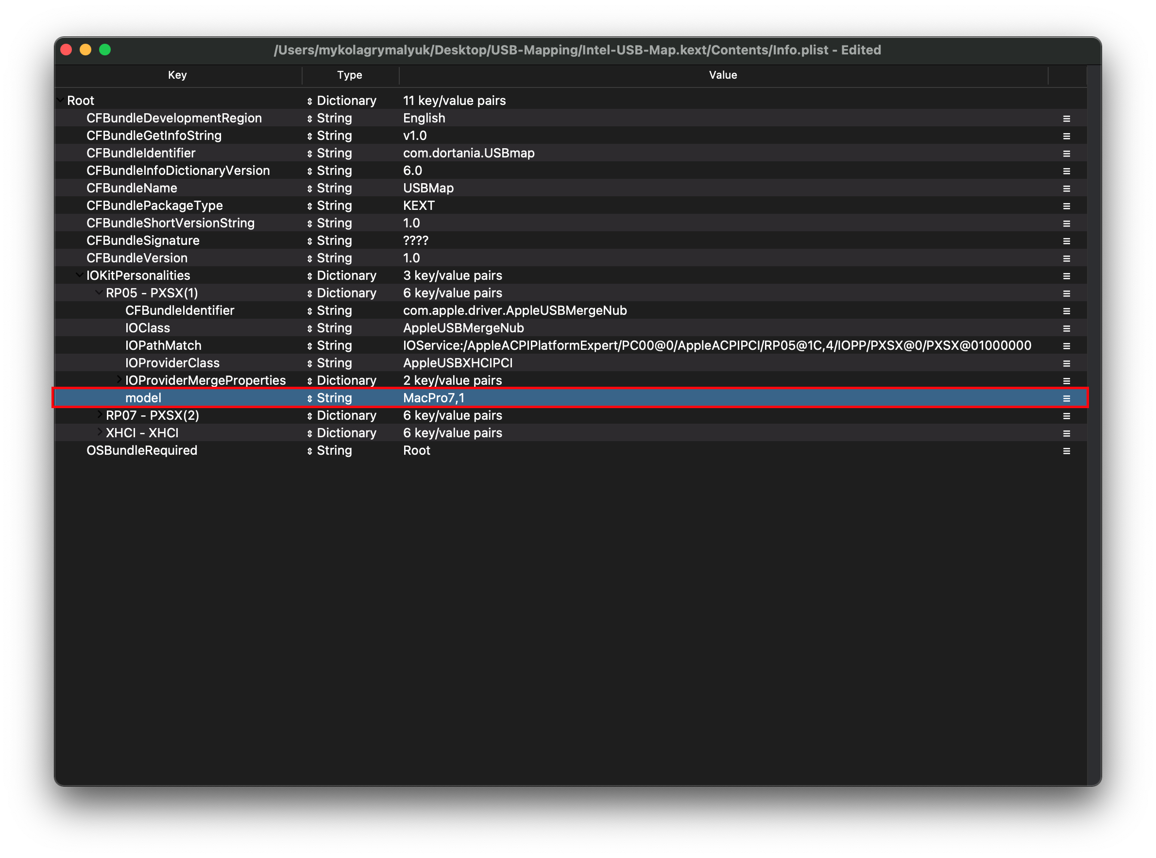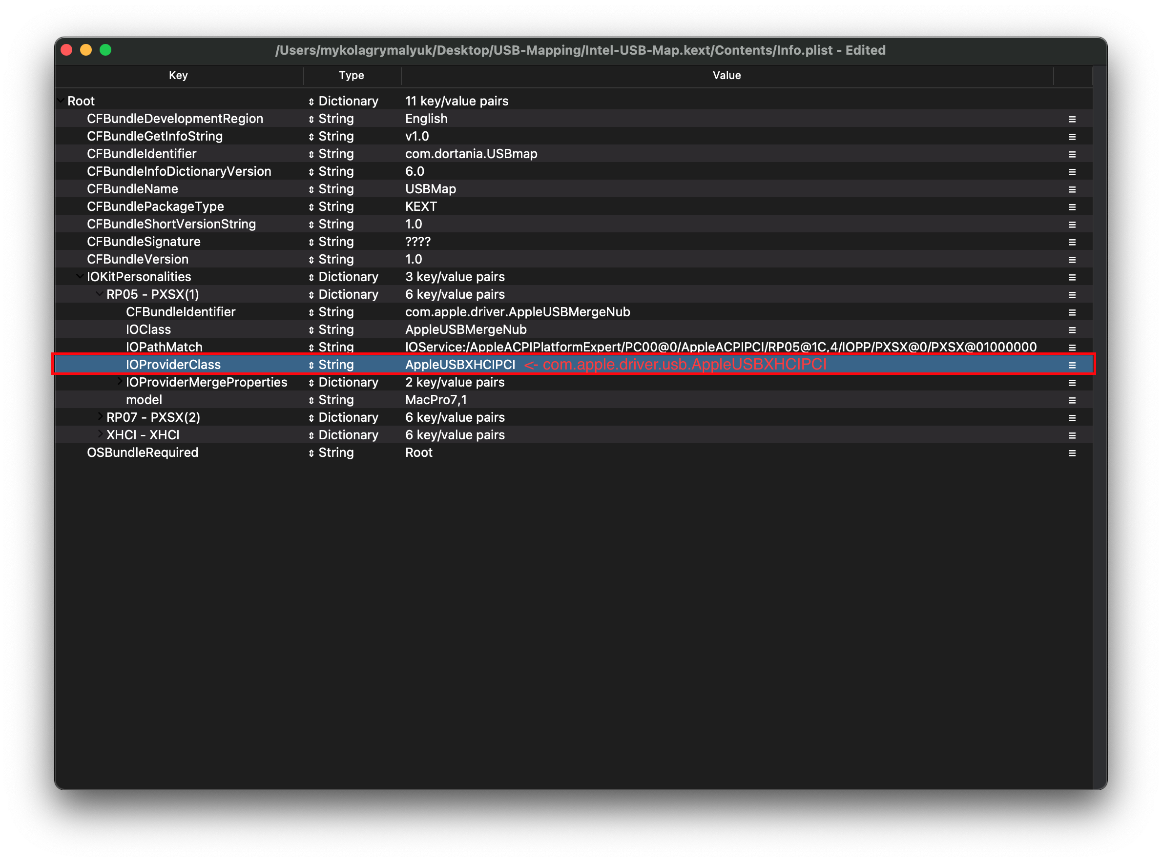 Giờ chúng ta không thể lấy nguyên xi giá trị đó, thay vào đó cần cắt bớt lấy tên ngắn gọn của Kext là AppleUSBXHCIPCI(Tức là bỏ phần com.apple.driver.usb.) đi