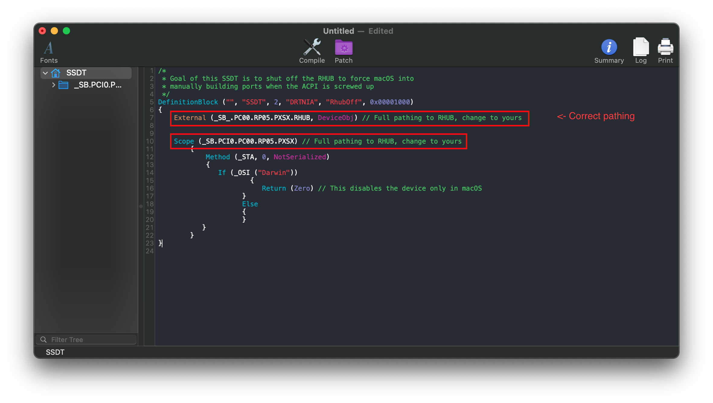 Following the example pathing we found, the SSDT should look something like this: