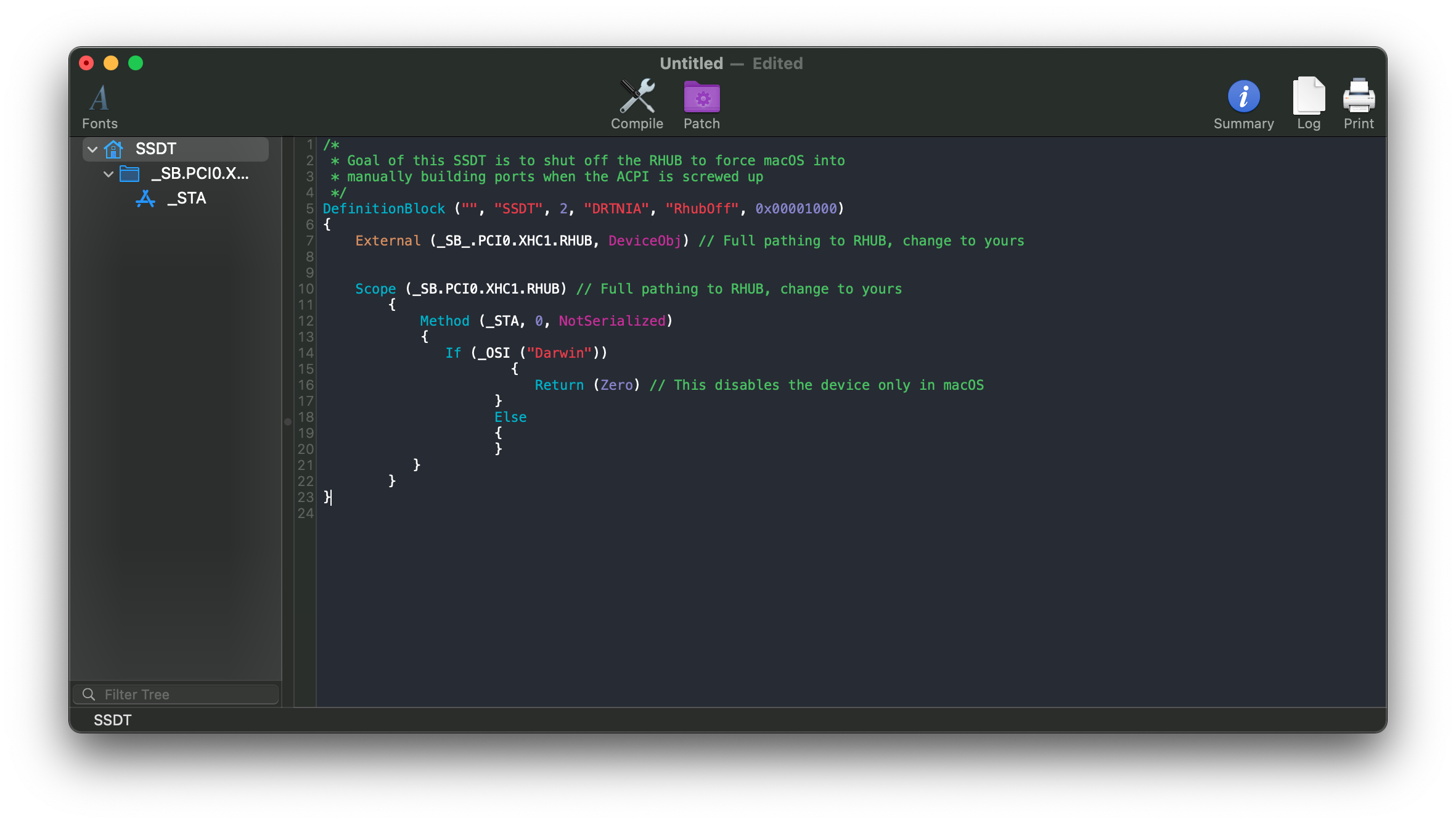 Mục đích của SSDT-RHUB là reset bộ điều khiển USB của bạn, ép macOS liệt kê lại tụi nó. Giúp tránh rắc rối khi cố vá các bảng ACPI hiện có.